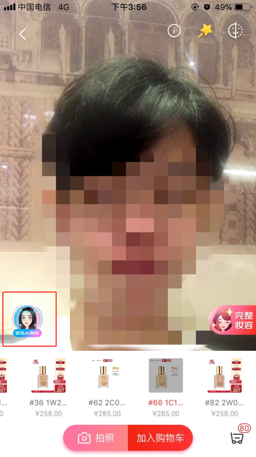 图为京东美妆AI测肤入口