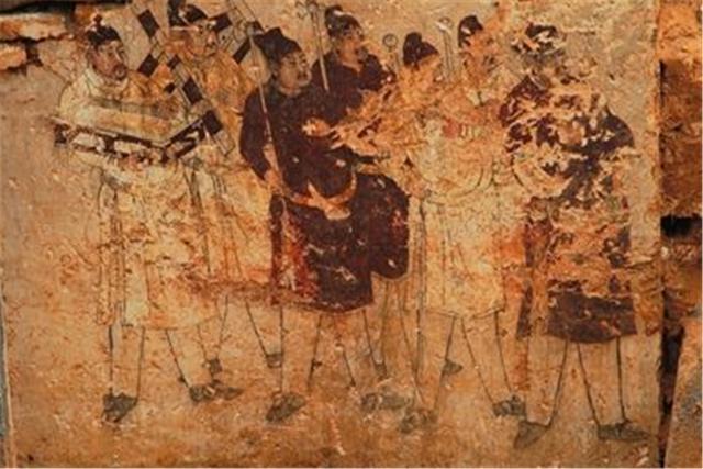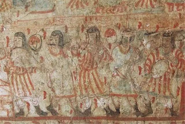 在壁画最左边,有汉字书写刘交的《元王诗》,字体呈现篆书向隶书过渡的特征,这与我国汉字发展历史相符;西汉早期,人们以"左"为尊位,到了武帝时期之后,人们逐渐开始尊"右";刘交是西汉时期楚国的第一位封王,敏而好学、善读诗书;而楚国就是现在的徐州一带。