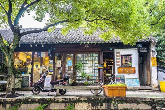看那撑船的水乡姑娘,一边划船一边轻声吟唱着优美动听的江南小调,古镇里小资意味浓厚的文创店随处可见,手绘明信片将一时的风景画作一世的记忆。门前,摩托车和自行车头向两边,像一对即将分开旅行的恋人。然而无论向左走还是向右走,水乡的温柔随处都在。