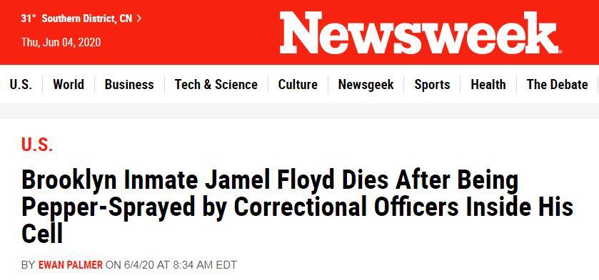《新闻周刊》则提到,一些组织对贾迈尔·弗洛伊德的死亡感到愤怒。他们在一份联合声明中称,尽管警方在全美抗议活动中使用过胡椒喷雾对抗示威者,但狱警对囚犯弗洛伊德所喷的胡椒喷雾剂量显然已经达到了致命的剂量。报道称,目前美国司法部已介入调查。