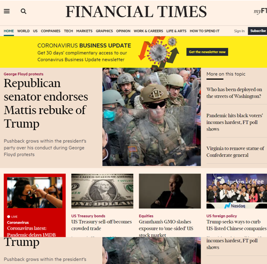 英国《金融时报》:共和党参议员批特朗普、支持马蒂斯