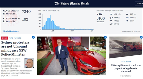 新南威尔士州警察部部长戴维·埃利奥特敦促人们不要参加周六在悉尼举行的“为乔治·弗洛伊德集会和守夜”的抗议活动。他暗示参加者“不正常”。“我不认为任何一个在疫情期间外出参加大规模集会的人是心智健全的”。该活动由三个当地的活动团体组织,已得到了新南威尔士州警方的授权。他说,批准集会实属迫不得已,如果不批准,组织者肯定会向最高法院起诉。“疫情期间参加这些集会的人并不在乎他们的父母说什么。”