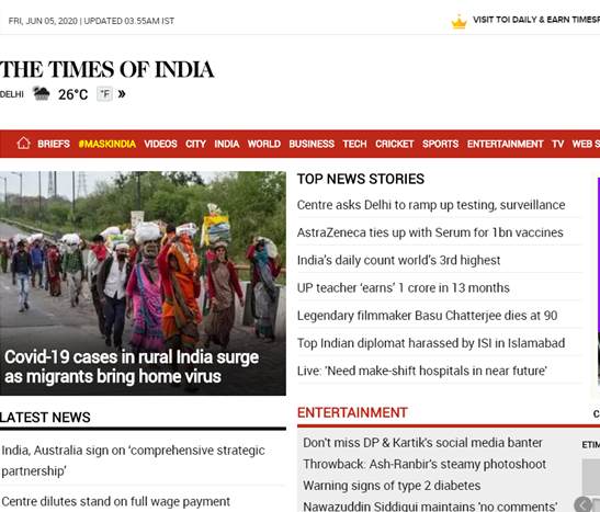 印度《印度时报》:农民工把病毒带回家,印度农村地区新冠病例激增