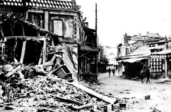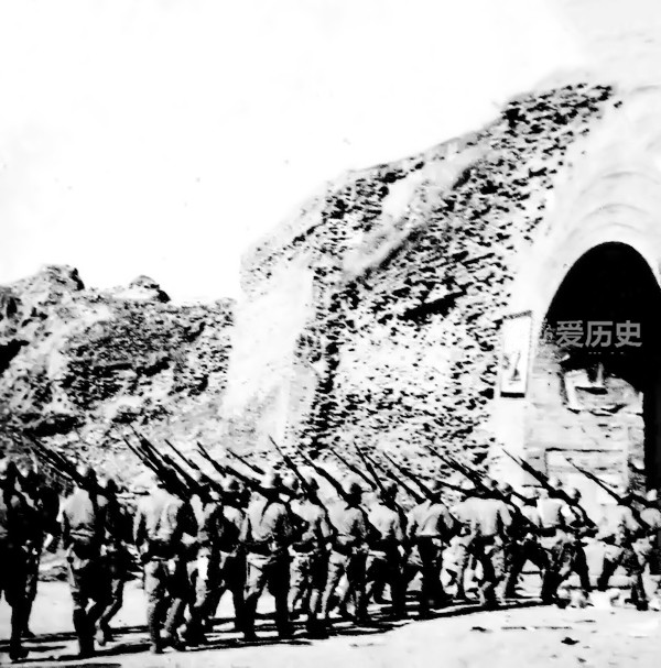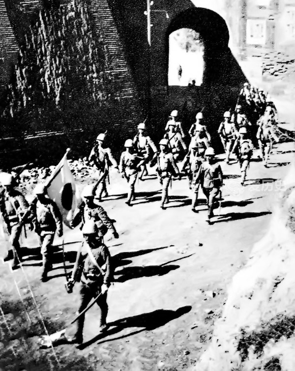 向河北进攻的日军沿着津浦线、京汉线一路突进,很快便占领了沧州、保定、定县、德州、石家庄等战略要地。图为日军大摇大摆的列队进入津浦线上的要地德州城内。