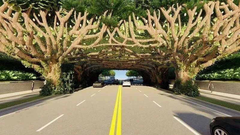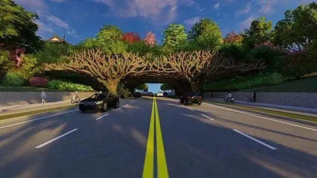 该负责人介绍,岘首山天桥设计匠心独运之处就在于从马路上看,天桥桥墩好像两个巨大的树干托起桥上的树冠,而从山上看,天桥桥面上不仅种植了黑松、紫薇、石楠等错落有致的景观树,还搭配有假山和凉亭,与两大景区融为一体。