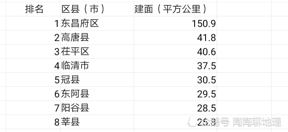 聊城市各区县(市)建成区面积排名表