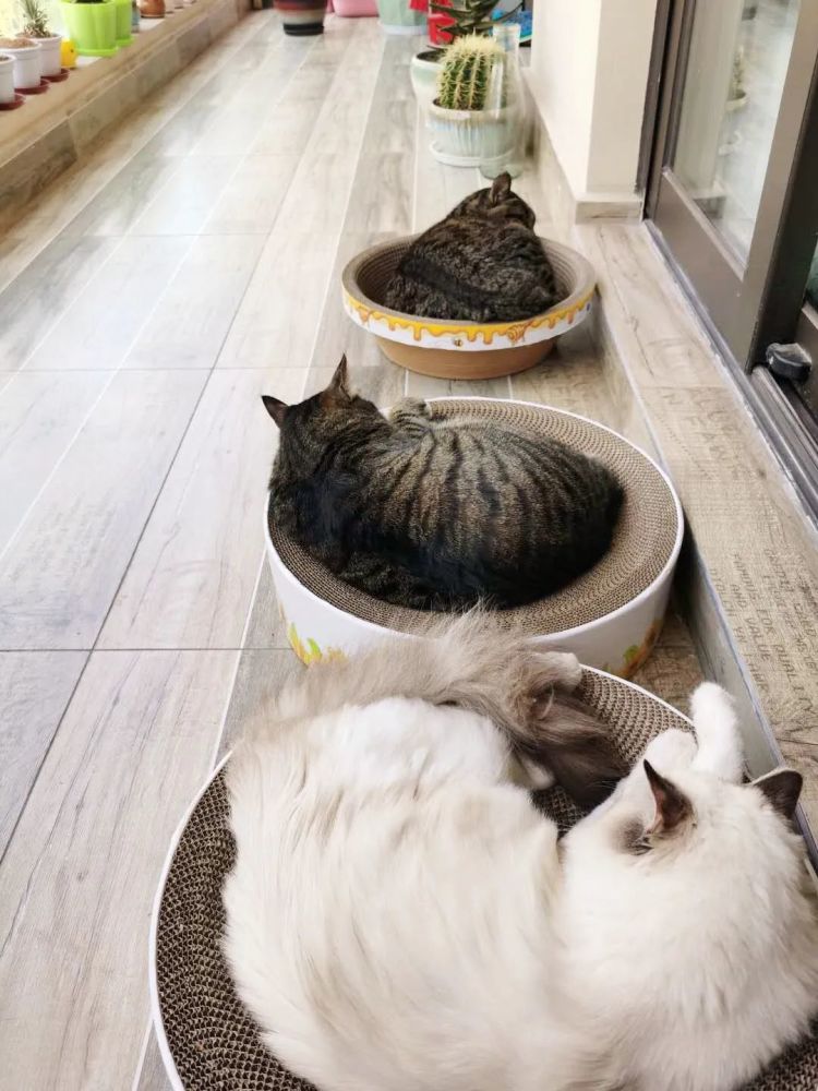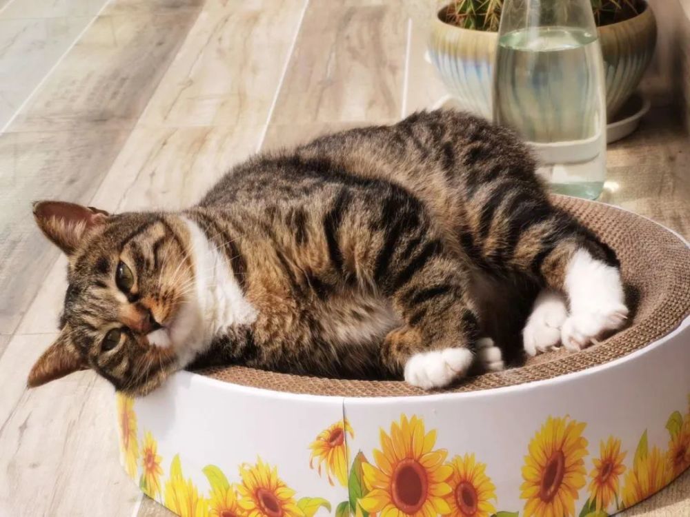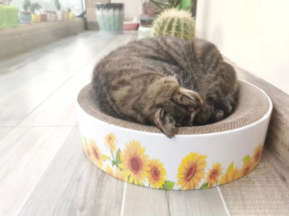 自己找一个猫抓窝,摆出最舒服的姿势睡觉觉。