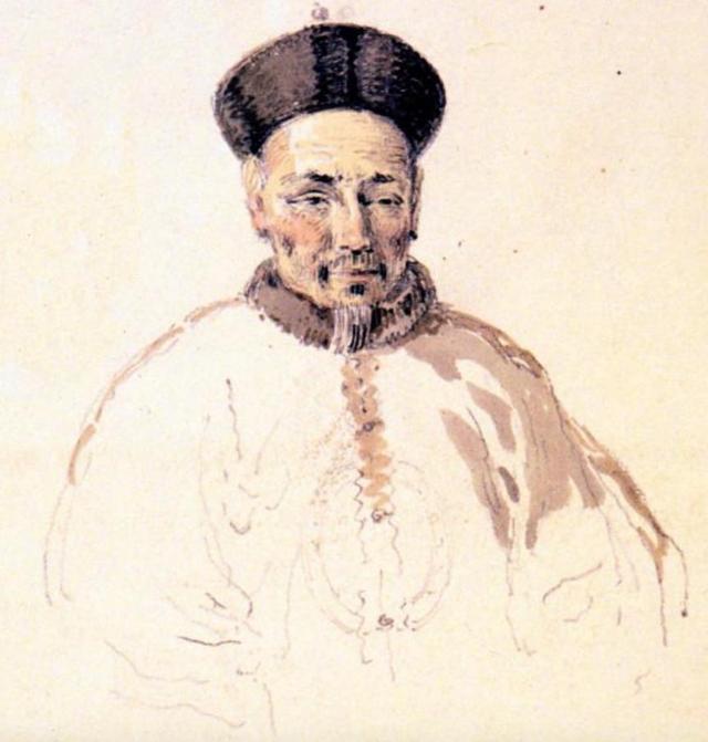 幸亏在1793年,英国马戛尔尼率庞大使团访华,觐见了乾隆。使团中随行画家见过乾隆皇帝真容后留下了以下的画作,在不受大清王朝的"写意"风格的控制下,写实的西方风格得到淋漓尽致的呈现,也让我们得以一窥写实版的乾隆皇帝。