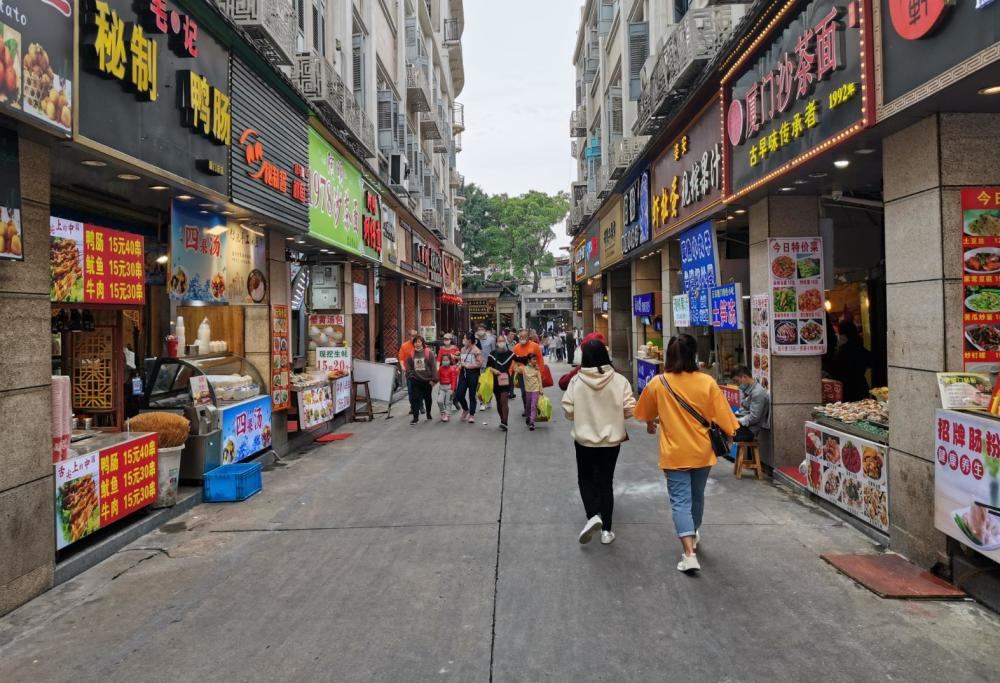 这里很多商铺都有年头了,中华老字号光华药店、黄则和花生店,很多都是厦门人从小逛到大的。天仙宾馆,厦门最古老的旅馆之一,1933创办,著名诗人郁达夫来到厦门时就曾下榻于此。