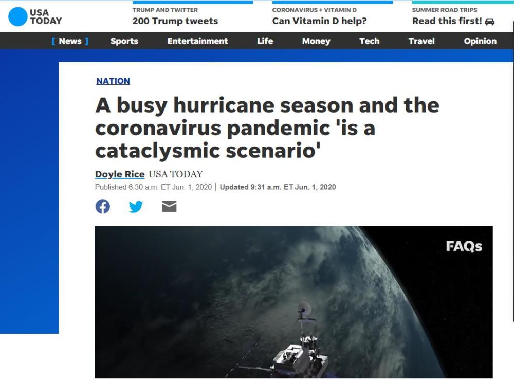 △《今日美国》,繁忙的飓风季碰撞新冠疫情带来大灾难