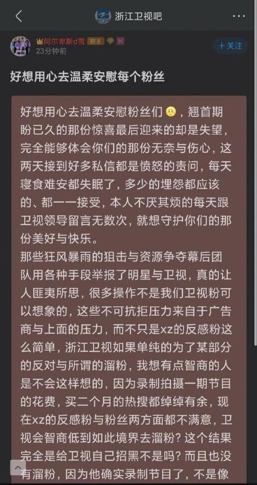 吧主在浙江卫视吧发出消息,对于肖战是否录制给出了一个准确回复,消息中能够看到一句话“他确实是录制了节目”,然而为什么没有播出,只是因为迫于不可抗拒的压力,对于是否溜粉吧主也是直接否定,并且表示“录制拍摄一期节目费用,买两个月热搜都绰绰有余”,对于吧主说的不可抗拒的压力相信大家都知道是来自于那里,肖战镜头被删除也是无可奈何之举。