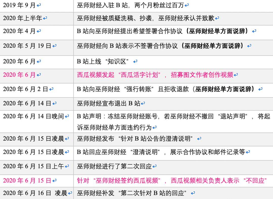 不论是按照B站的说辞还是巫师财经的声明,这件事的经过本身并不复杂。