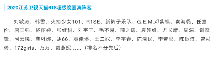 天猫与拼多多纷纷联合卫视搞起超级晚会,而京东没有。湖南卫视举办拼多多618超拼夜,6月17日晚19:30湖南卫视&拼多多直播间与观众见面,李宇春、the nine首舞台等重磅炸弹持续放送。江苏卫视6月16日19:30播出天猫超级晚,王源等一线明星阵容也不输另外两台。