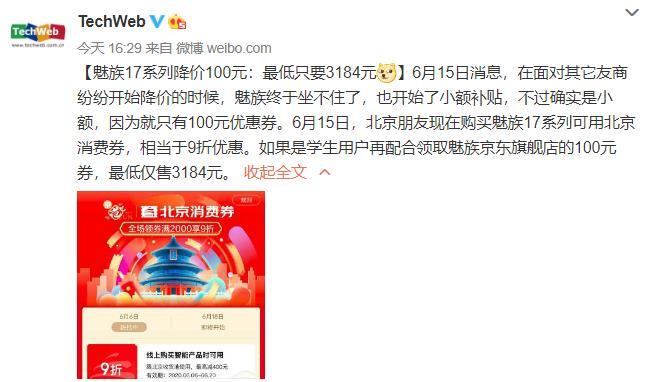 现在轮到了魅族17这款机型,信息显示当面对其它同档次机型降价之时,魅族17也是扛不住的。这一次是魅族17参与到了消费券活动之中,不过只能使用100元,假如你是学生的话还可以领到魅族京东旗舰店的100元,现在最低到手价仅需要3184元。比当时的3699元便宜了500元,这个价格与当时PDD百亿补贴的到手后的价格基本相同,你说这能是巧合吗?