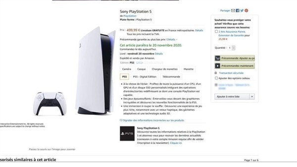 近日,法国亚马逊上线了PS5的销售页面(不久后被删除),页面信息显示,PS5有光驱版标注价格为499欧元(约合人民币3982元) ,无光驱版价格399欧元(约合人民币3184元) ,预计于今年11月20日正式发售。