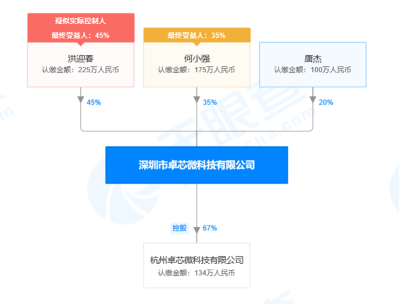 据工商信息显示,截止目前「深圳市卓芯微科技有限公司」未开展融资,洪迎春疑似实际控制人。