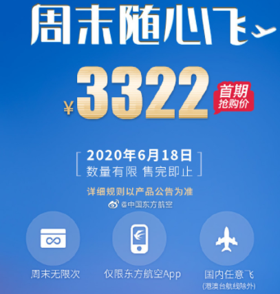 6月18日,东航发布了一张3322元“周末随心飞”的产品海报,撩动了无数颗被疫情禁锢已久的心。