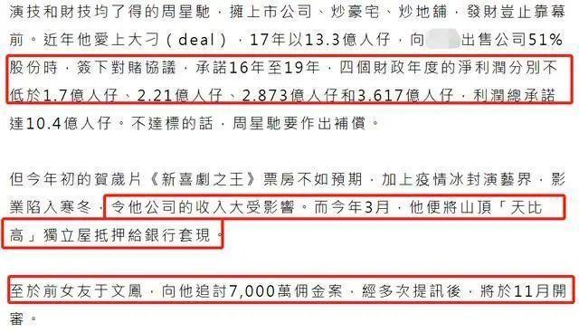 周星驰从影这么多年,而且还拥有上市公司,电影赚的钱又是炒豪宅,购商铺,而且还在其他领域有很多的投资,身家早已不菲,难道如今真沦落到要抵押豪宅贷款的境地?