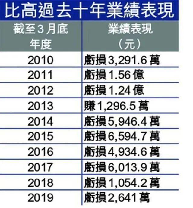 随后几年,周星驰对比高集团的持股达到50%以上,实现了对公司的绝对控股。然而可惜的是,比高集团上市以来,业绩几乎一直处于亏损状态,营业额也从数亿元降至数千万元。