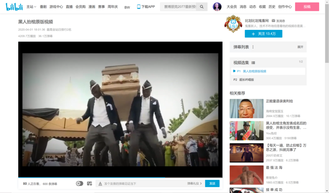 另外,去年我就观测到B站泛化的一个有趣的特征,原属B站生活区的搞笑板块,出现了越来越多的千万级播放的视频素材(当然还有传统的鬼畜区)。而这些“沙雕”视频,恰好是推荐算法最容易找到的“审美最大公约数”。这件事在内涵段子、快手、抖音、Tiktok上已经又一次验证过一遍又一遍。