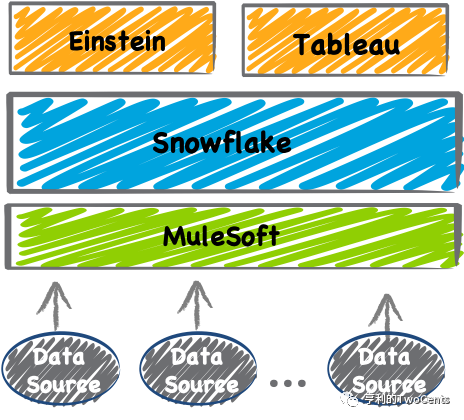 2019年跟对手微软合作,把Marketing Cloud部署在Azure,并把自身的企业协同产品Chatter与微软的Team实现互通。虽然两者在CRM市场斗得你死我活,但世上没有永远的敌人,diversity才是王道。另一边的Snowflake,Day1就开始部署在Amazon AWS上,到2018年开始与微软Azure合作,再到2019年和GCP结盟,打造跨越三大云的数据平台。对于Salesforce来说,跟云厂商的合作,不仅体现在IaaS架构上的部署,更体现在产品之间的互通,来满足客户多样化的需求。对于Snowflake来说,作为一个数据产品,平台的独立性非常重要,让客户避免被厂商的“lock-in”。