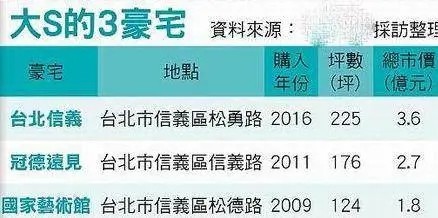 台媒一直说“大S有三套豪宅”,其实指的就是她婚前与婚后所购买的房产。