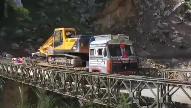 2020年6月27日,在印度北阿坎德邦边界附近的蒙萨里-米拉姆(Munsyari-Milam)公路上,一座重要的桥梁于6月22日倒塌,当时一辆载有推土机的卡车通过,没想到推土机太重,刚到桥中央,大桥断裂,连人带机掉下,视频传到网上,引起世界网友热烈讨论。然而,据印媒周六报道,印度边境公路局(BRO)已在短短五天的创纪录时间内重建了这座桥。
