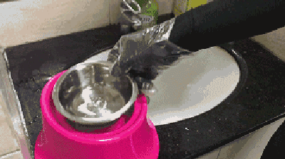 在给猫咪准备饮水的时候