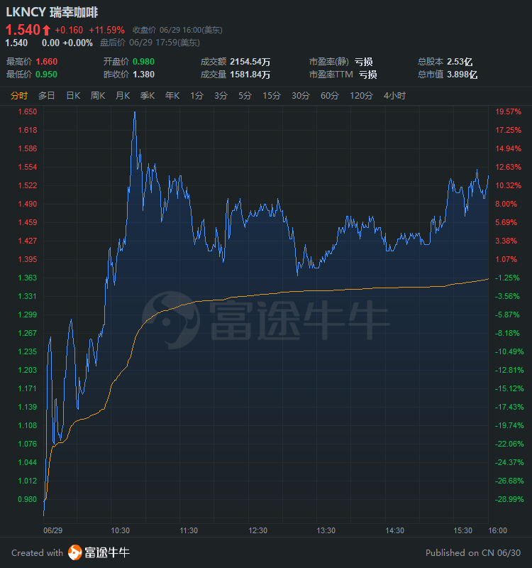 退市后的瑞幸周一在OTC(场外交易)市场进行交易,股票代码为瑞幸咖啡(LKNCY.US)。截至周一收盘,瑞幸涨超11%。