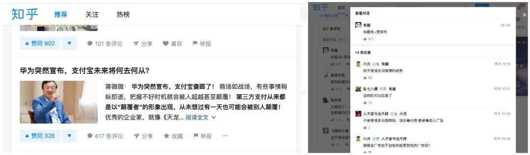 同样被网友评论“变味儿”的,还有问答社区知乎。此前因为面向新手妈妈们推出营销话题引发“知妈乎”热议,也让知乎的“破圈”成为行业内的焦点。