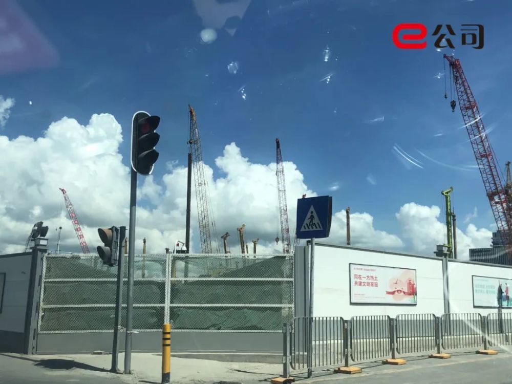 围起来的工地各自忙碌,仅隔两车道的公路偶有车辆路过,不知围栏内的世界。