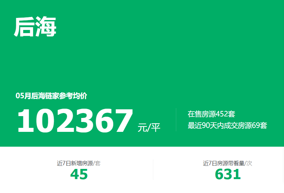 链家网上最近后海片区最新房价信息。