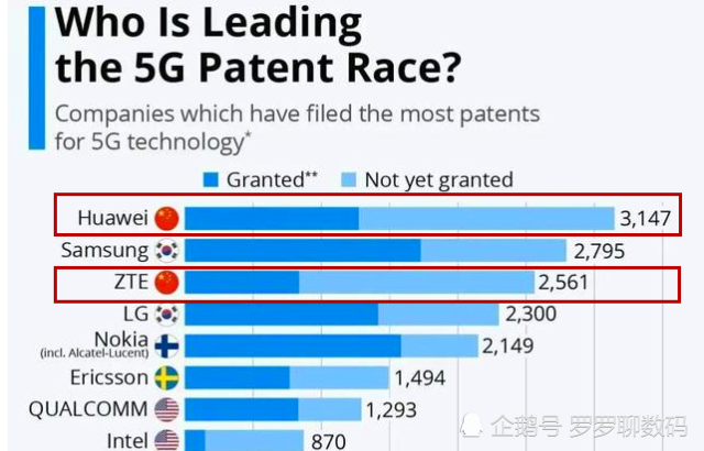 华为牵手德国之后,1000亿国产巨头宣布,拿下邻国5G大单。不过除了华为之外,国产还有一个5G巨头,这就是中兴,我们从5G核心专利上就可以看到,华为获得了核心专利达到了3147项,位列全球第一,而中兴也不差,拿下了2561项核心专利,位列全球第三,而且在5G商业合同方面,如今华为是100份,中兴也拿到了46个。
