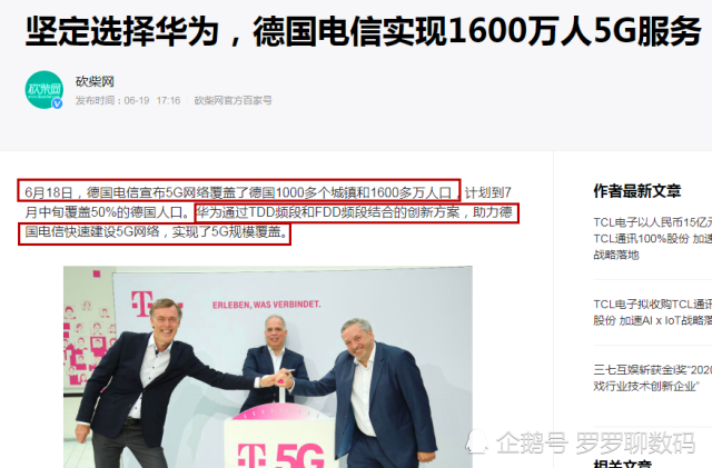 6月19日,来自砍柴网的消息,德国电信宣布和华为签下最大的5G合同,网络建设范围达到德国一半的城市以及人口,而且华为因地制宜,采用了TDD频段和FDD频段结合的创新方案,因此双方合作不会受到美国的影响,这也是华为在欧洲市场一个非常大的突破了,毕竟德国可是欧洲大国,美国的盟友,如今却选择和华为合作,意义非常非同一般。