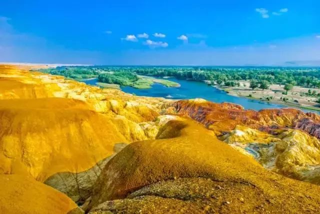 阿勒泰很美,美在“一河隔两岸,自由两重天”的五彩滩。一岸碧水绿树温润,一岸悬崖式雅丹地貌火热。