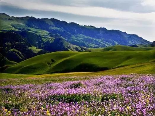 5、6月的伊犁,紫色花海弥漫山谷,青绿色的草原洋溢浪漫。