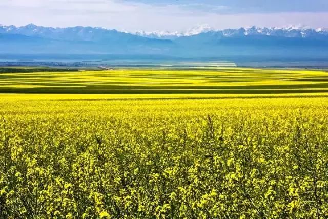 伊犁很美,美在七月一半油菜金黄、一半紫苏绚丽,浪漫到无以复加的昭苏花海。