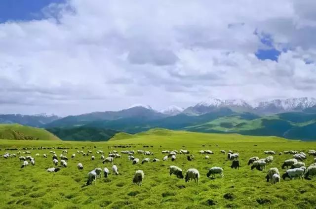 伊犁很美,美在初夏时绿浪涌动,花海延绵,草长羊肥的那拉提草原。