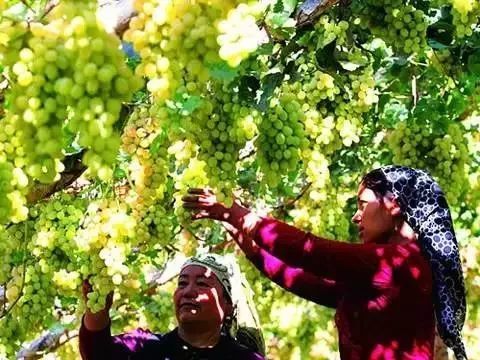 吐鲁番很美,美在8月葡萄长廊丰收时的葡萄沟。一串串沉甸甸的葡萄,在阳光的照耀下显得格外诱人。