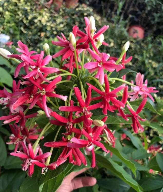 广西等西南一带的路边、公园就有使君子,但是北方地区少有人见过。使君子开花特别美,还很香,花朵有单瓣的也有重瓣的,单瓣花可以结果,它的果实可以杀虫,中药房就有使君子果实卖,专门给小孩子肚子杀虫用。