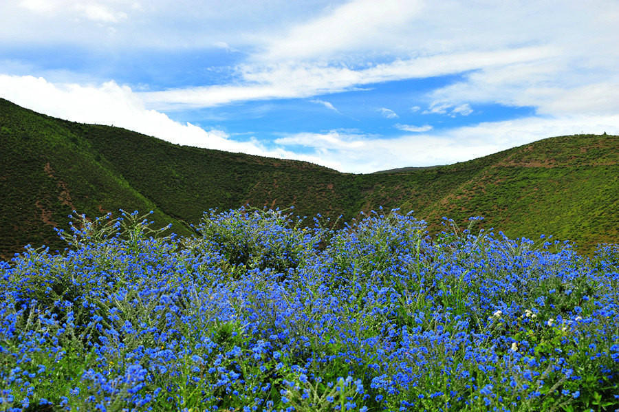 倒提壶是一种民间野花,生于云南、贵州、西藏、四川及甘肃等地,它是琉璃草属植物,花朵精巧浓密,花瓣颜色蓝汪汪的,真的跟琉璃一样梦幻,种一大片花海,从远处看效果最震撼。