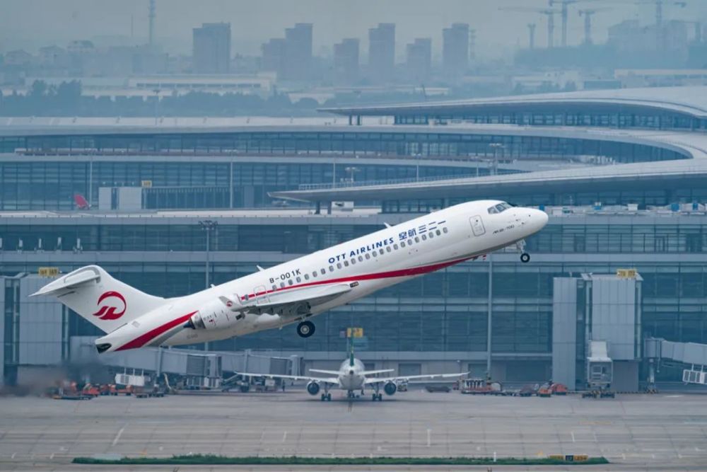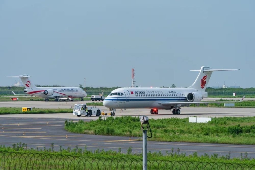 国航(B-605U)、南航(B-605W)、一二三航空(B-123A)首架ARJ21在浦东机场进行试飞(图源::万全、查理爱飞机)