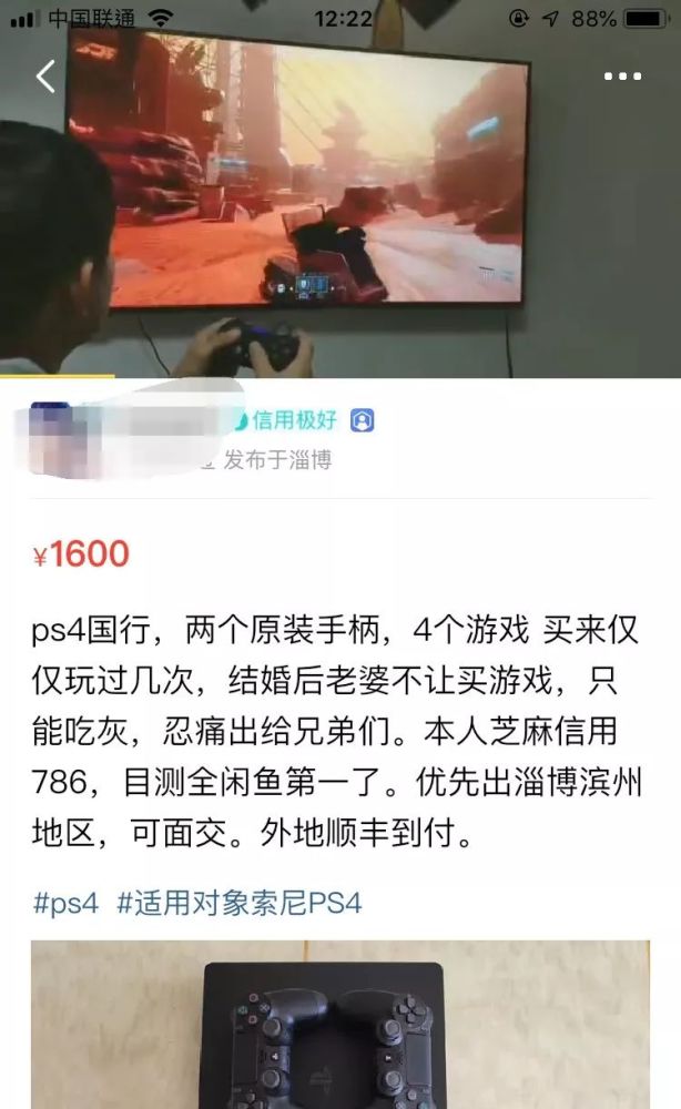 下图这位老哥就是个铁板案例,结婚后老婆立刻变脸不让他再买任何游戏,无奈之下只好将心爱的PS4打包出售: