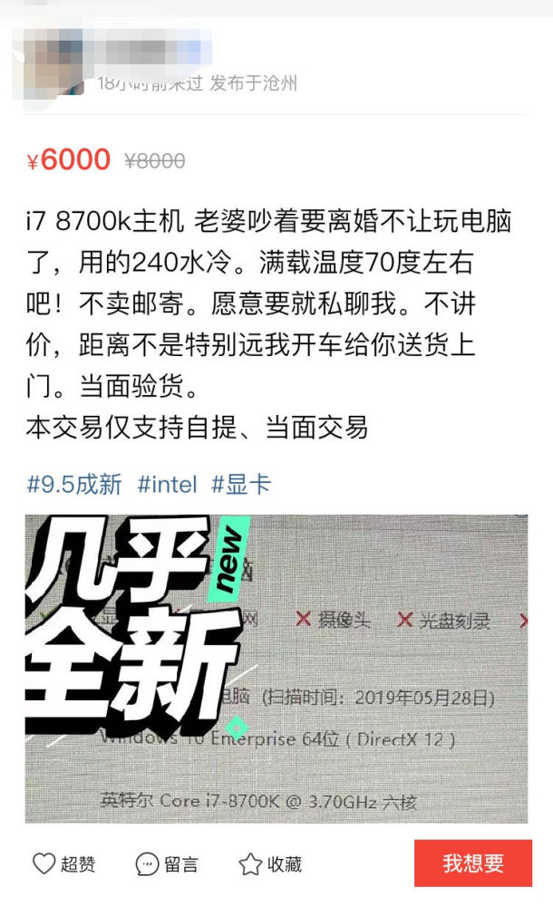 在最下面的相似商品推荐里,院办又看到了一位刚入手高配电脑就被老婆以离婚相逼,无奈之下将几乎全新的电脑挂售的准爸爸: