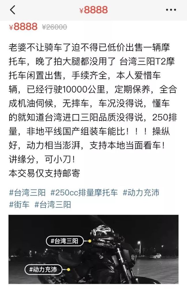 在被老婆逼着卖东西这件事上,不仅游戏宅男们惨,哪怕是多数人眼里飙车不要命的亡命摩托骑士,在老婆的威逼下也不得不送走自己的爱车: