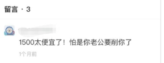 从评论看,这位老哥鸣不平的时候,价格还是1500。可能是这位女士十分自信自己的老公不敢削自己,于是又愉快的将价格降了300 。