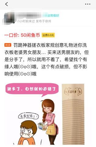 同理,那些未婚的老弟可能直到分手后,才会在闲鱼看到自己前任不为人知的一面:她们不但想让你跪搓衣板,还想让有缘人带着自己的伴侣和你一起跪搓衣板。(???)