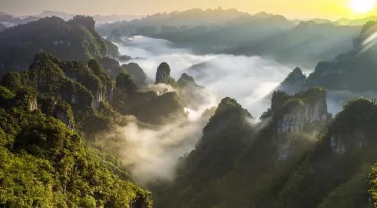 拥有山、水、林、洞、湖泊、瀑布等多种自然景观。这里的水碧绿澄澈,犹如上等的宝石,迷人而不自知。