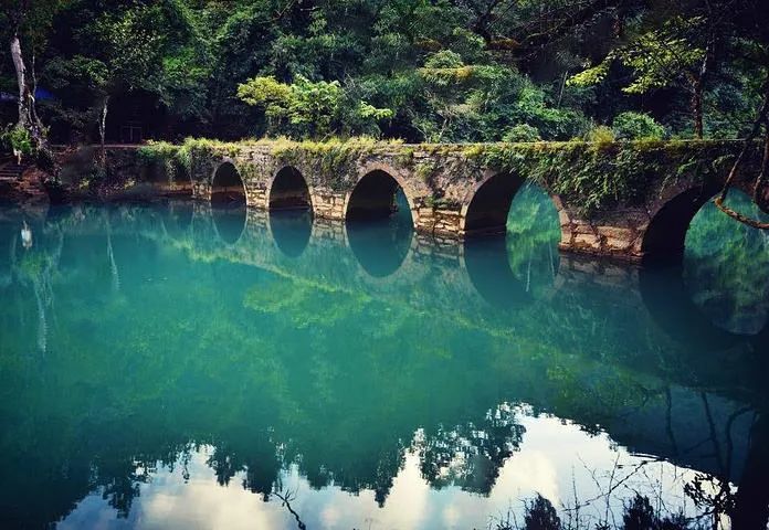 荔波小七孔又被称为“贵州小九寨”,是电视剧《将夜》、《双世宠妃2》的取景地。