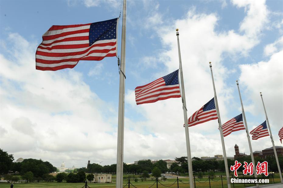 当地时间5月21日晚,美国总统特朗普发布公告,全美自22日起降半旗三天,向新冠肺炎逝者致哀。图为22日的华盛顿国家广场。